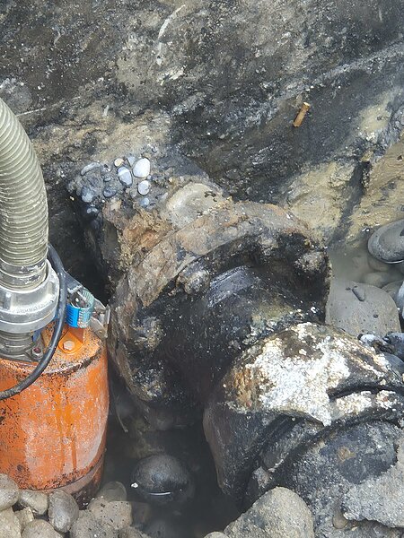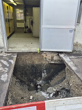 Beim Pumpwerk Niederuntigen war die Druckleitung defekt und wir mussten schnellstmöglich das Leck orten und Massnahmen zur Eindämmung treffen. Ausgangs der Leitung war der Anschlussflansch defekt. Dort entwich Abwasser und floss wieder in das Pumpwerk zurück. Die Reparatur konnte erfolgreich abgeschlossen und die Druckleitung wieder in Betrieb genommen werden.
